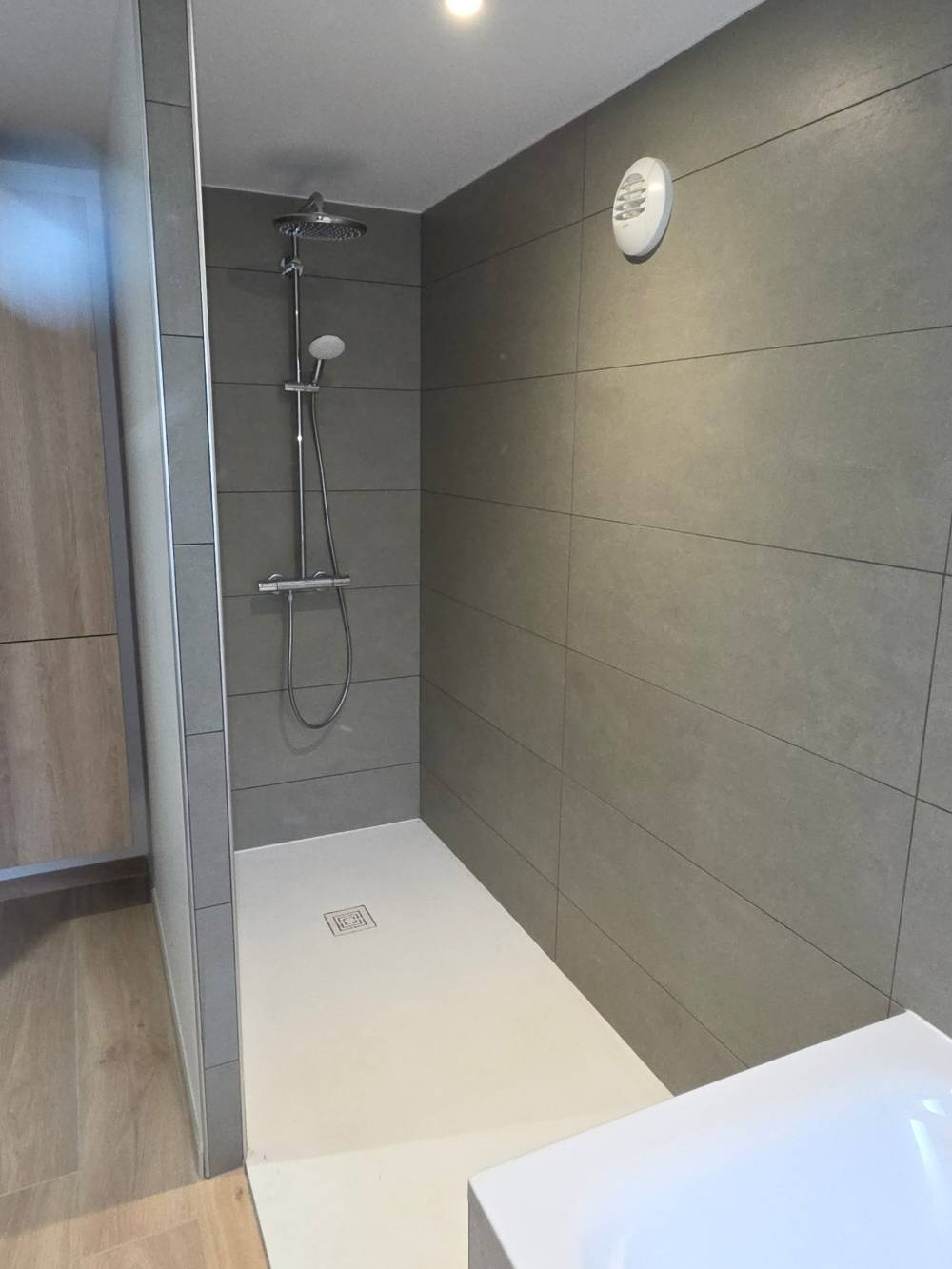 - Un espace douche, équipé d'un bac à douche et d' une colonne de douche