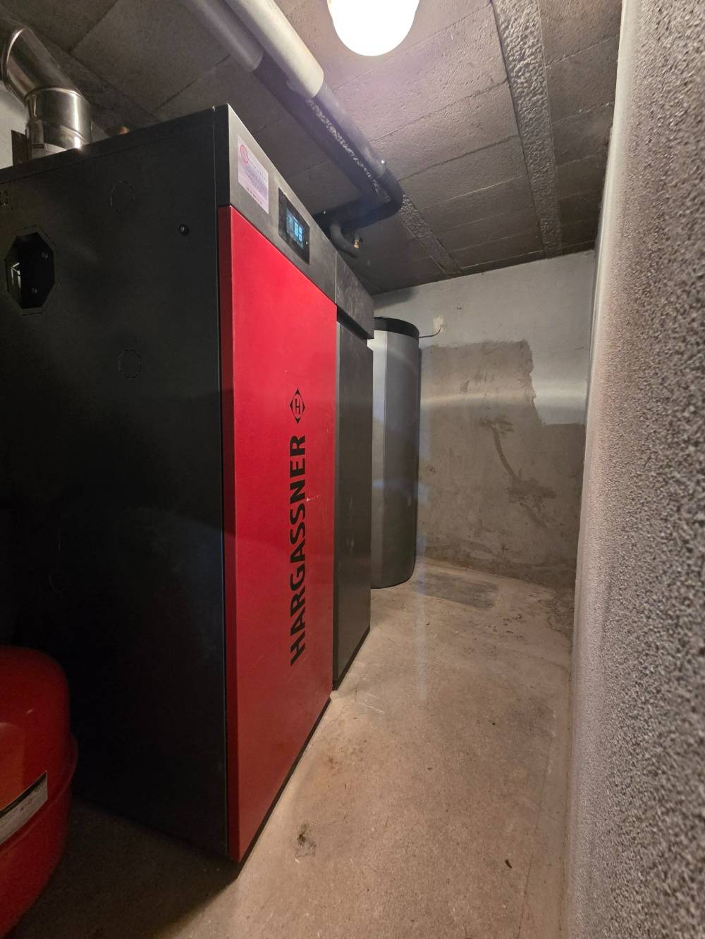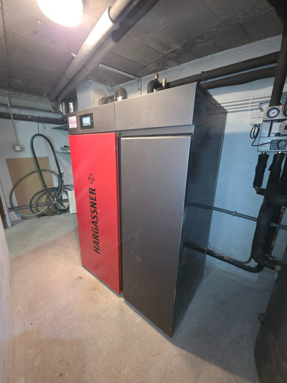 A Haute Rivoire, dans le Rhône, pour un logement qui va être loué, nous avons procédé au remplacement d'une chaudière fioul par une chaudière granulés de bois Hargassner Smart PK de 17 kW.