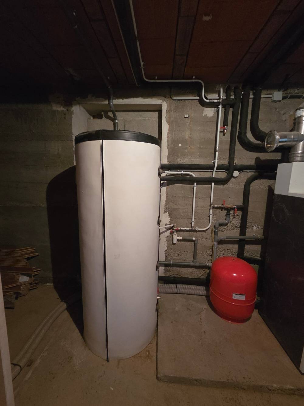 Cette chaudière est associée à un ballon tampon de 500 litres avec serpentin eau chaude inox intégré. Nous avons également installé une sonde extérieure fournie avec la chaudière, ainsi qu'une commande à distance en complément de la régulation Hargassner.