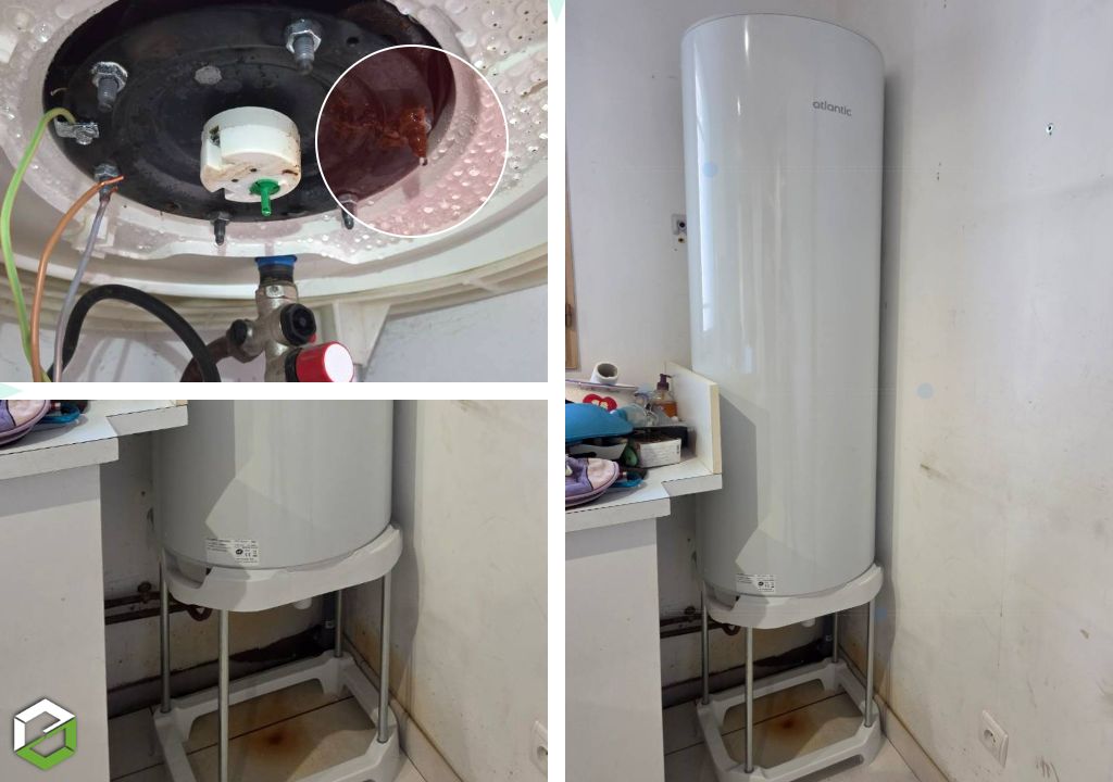 Après lui avoir fait coupé l'eau, nous sommes allés voir dans la matinée et avons constaté que le chauffe eau était percé. L'après midi même, nous avons pu remplacer le chauffe eau et le client a pu retrouver de l'eau chaude.