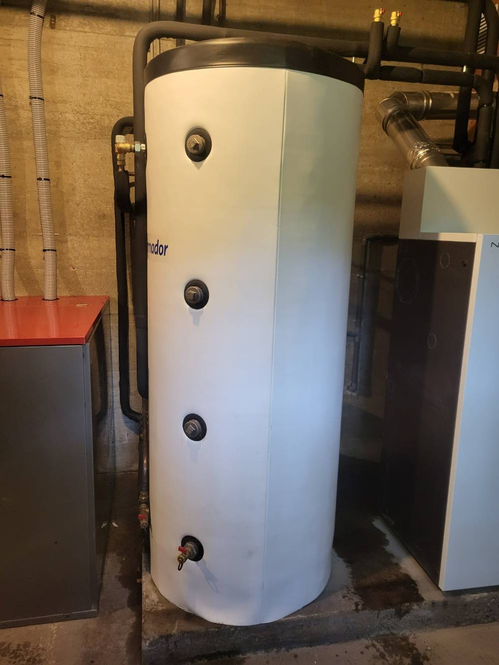 Cette chaudière est associée à un ballon tampon de 500 litres avec serpentin eau chaude inox intégré. Nous avons également installé une sonde extérieure fournie avec la chaudière, ainsi qu'une commande à distance en complément de la régulation Hargassner.