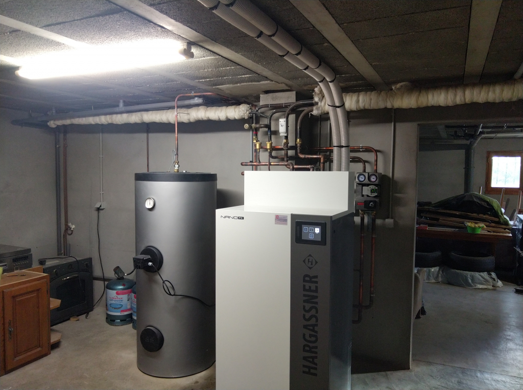 Remplacement du système de chauffage, nous avons proposé aux clients en tant qu'installateur RGE qualibois, une chaudière granulés bois Hargassner type NANO PK 9kw .